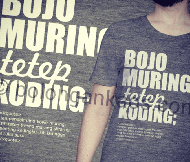 Design T-shirt di bolongankaos.com menghadirkan tipografi dan ilustrasi bold sebagai medium ekspresi, humor, dan identitas kultural yang dekat dengan keseharian.