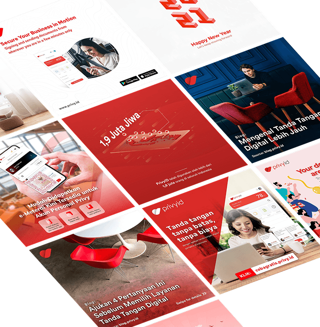 Social media Privy menjadi kanal utama untuk mengedukasi, merayakan pencapaian, dan memperkuat kepercayaan pengguna melalui konten visual yang konsisten dan modern.