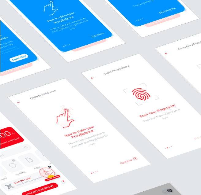 Mobile UI Privy menghadirkan pengalaman aman dan intuitif dengan desain modern, konsisten, dan fokus pada kejelasan interaksi digital.