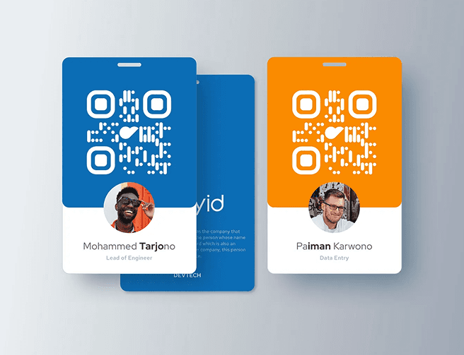 ID card Privy menggunakan QR code sebagai simbol modernitas dan keamanan, sekaligus memperkuat identitas brand di seluruh media stationery.